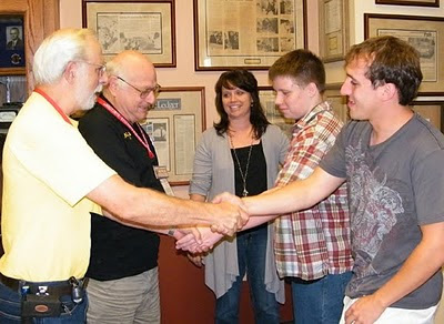 New Hams From Far And Near Ernie KG4YNI and Jim AI4LE congratulate Chad standing next to his mom, and Steven. Chad and mom are from Orchard Park NY, while Steven is from Lakeland. Also present, Bill KI4ZMV.