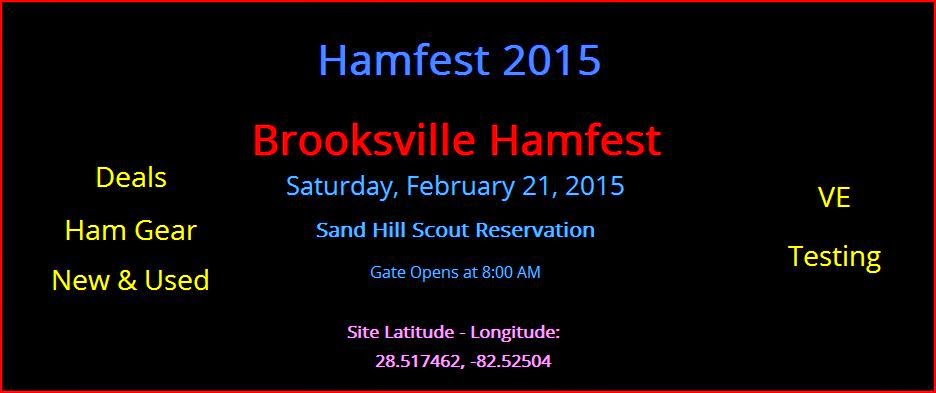 The Brooksville Hamfest is only a few weeks away on February 21st. We are planning on the biggest, best Hamfest in memory. I hope you have made plans to attend. Attached you will find a flyer with details and a $1.00 discount coupon for entrance. Print it out and bring it with you.