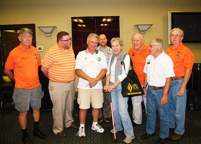 Above are the members of the Florida Contest Group,who attended our meeting to hear Ellen speak.This group was founded by K4OJ,Ellen’s son.Standing on the far left,proudly wearing the group’s colors,and no stranger to the members of LARC is our very own,Bob Foxworth,K2EUH.