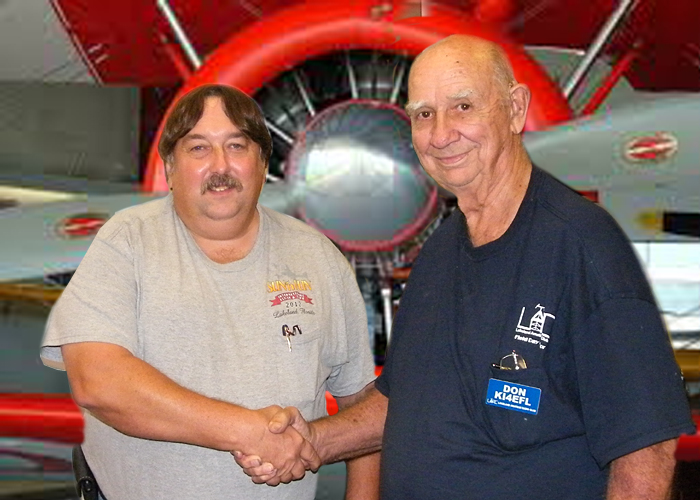Congratulations are in order.We have a new Tech,David McQueary KM4LPR,from Sun and Fun.Dave is shaking hands with his Elmer,Don Jeerings.