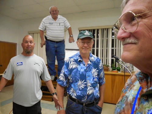 Randy Wildman, AD4RW; Louis Pacheco, KK4TSH, general (dark T-shirt); Austin Kline, KM4DNB, technician, (plaid shirt); Richard Grubb, W8DUK; Ringo Breton, KG4DUF