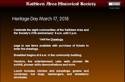 Consider dropping by the Kathleen Area Historical Society Heritage Day, Saturday March 17, 2018.