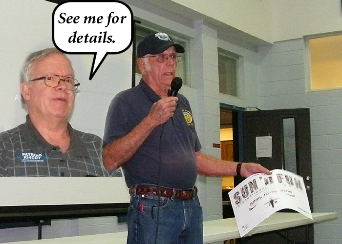 Tom reviewed the details for this year’s Sun and Fun Special Event Station. If you like radio and airplanes, this is your chance for a big win win Participants get a free pass to the show, along with some special parking. For details, please contact Patrick. He is a veteran of this event, and can fill you in. Sun and fun will start April 10th this year. Be sure to check with Patrick well in advance