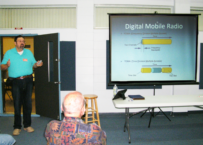 In his presentation Drew discussed the history, theory, and practice of ham radio satellite communication. It was made clear that it doesn’t take much to get started in satellite radio. An antenna and a dual band HT will do. Two dual bands are better.