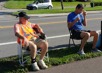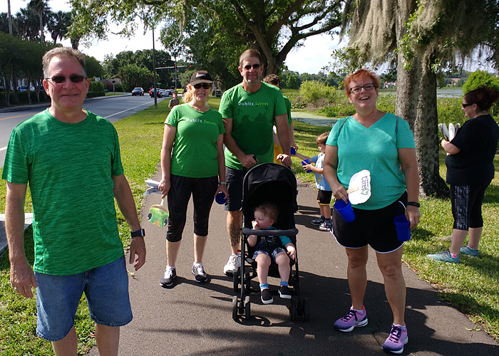 One of the functions we perform at this event is that of determining the last of the marchers and reporting back their location. This year the marchers holding up the rear were my good neighbors, Jim and Frances Robinson. They are the two in the rear pushing the baby carriage.