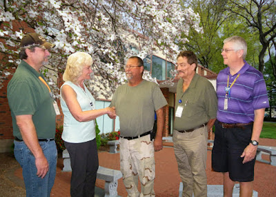 Left to right, Dave Ingram, new Tech – KN4DTS, Rich, Craig Bailey, new General, KN4DLS, Peggy, testing coordinator, and Duane Archibald, N4WDH who is also the president of the East Pasco Amateur Radio Club.
