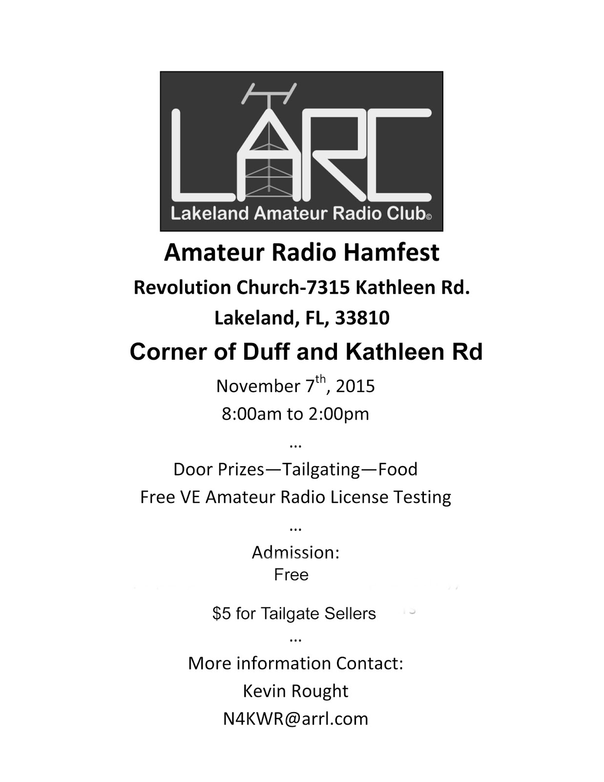 A lot has changed with LARC since our trip North to our summer home in Franklin, N.C. You now have a new meeting place, Field Day has come and gone, a Tail Gate, and now a picnic. I regret missing the meetings and all of those events. I expect to see familiar faces at the LARC meeting in November.