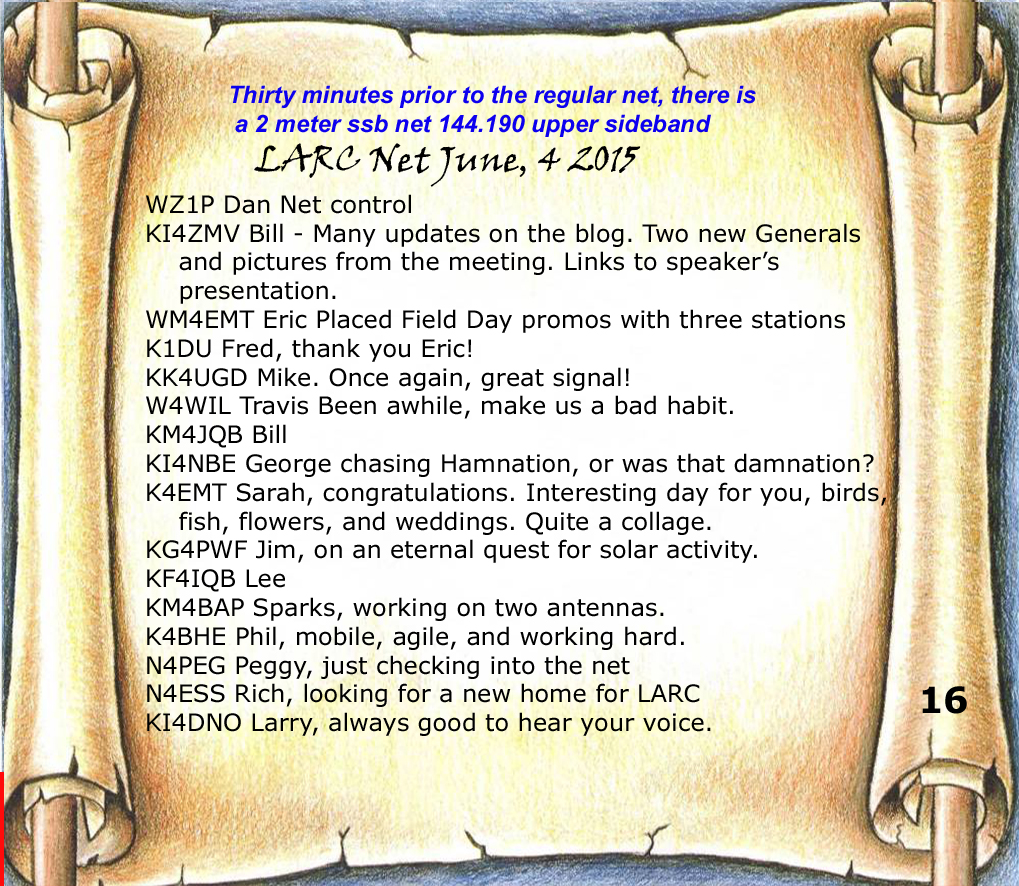 Get your questions ready. Ellen White will be our guest speaker next month. She is a world traveler, avid ham radio operator, and long time ARRL staff member before retiring. If you have any questions about the ARRL, especially the early years, get them ready for Ellen. I think you are going to find her both a wealth of knowledge, as well as a fascinating individual.