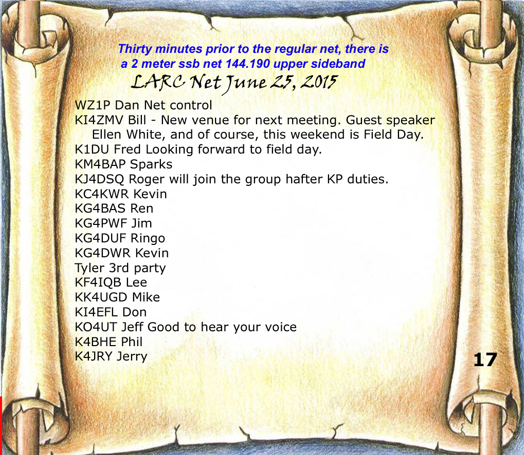 Get your questions ready. Ellen White will be our guest speaker next month. She is a world traveler, avid ham radio operator, and long time ARRL staff member before retiring. If you have any questions about the ARRL, especially the early years, get them ready for Ellen. I think you are going to find her both a wealth of knowledge, as well as a fascinating individual.