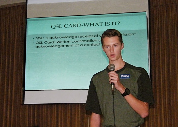 Typical of Andrew, half measures just don’t cut it. His presentation on QSL cards was no exception. He thoroughly researched his topic, created simple, yet effective graphics to get his message across, then delivered it with poise. First rate!